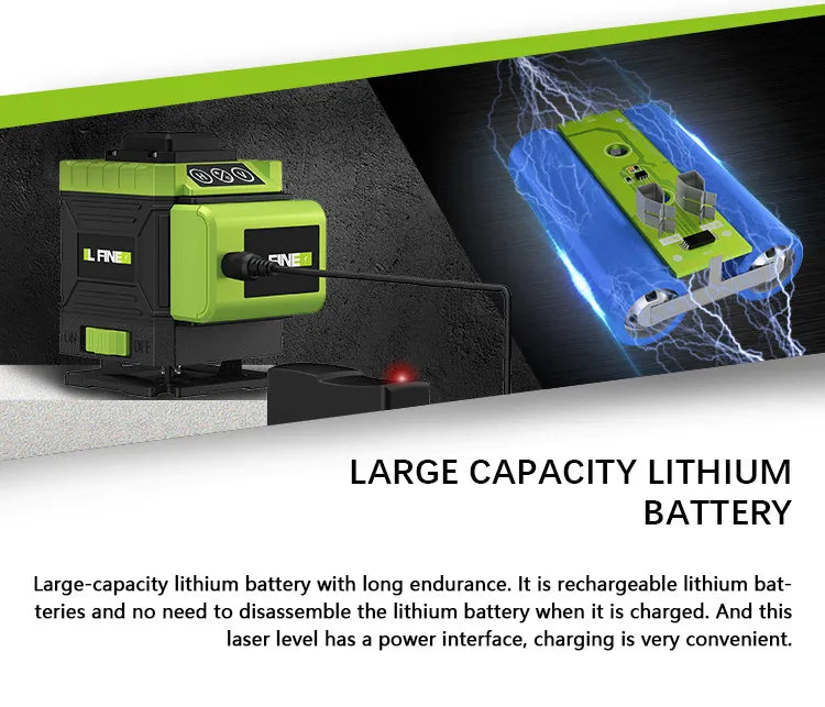 Achieve precise measurements with the 3D12 Line Green Laser Level, designed for both professional and home use. This high-quality laser level delivers clear, visible green lines, ensuring accuracy in your projects. Whether for construction or DIY, its durable design and powerful performance will make any job easier.